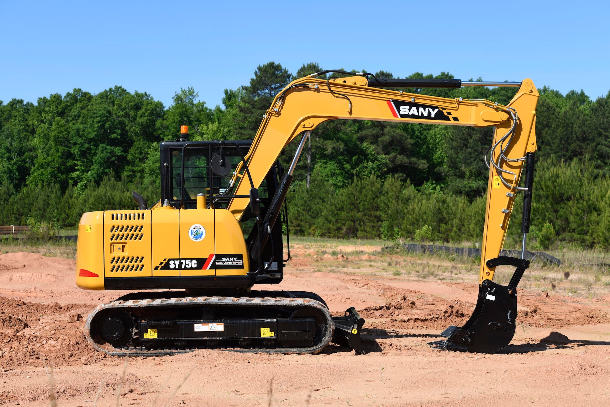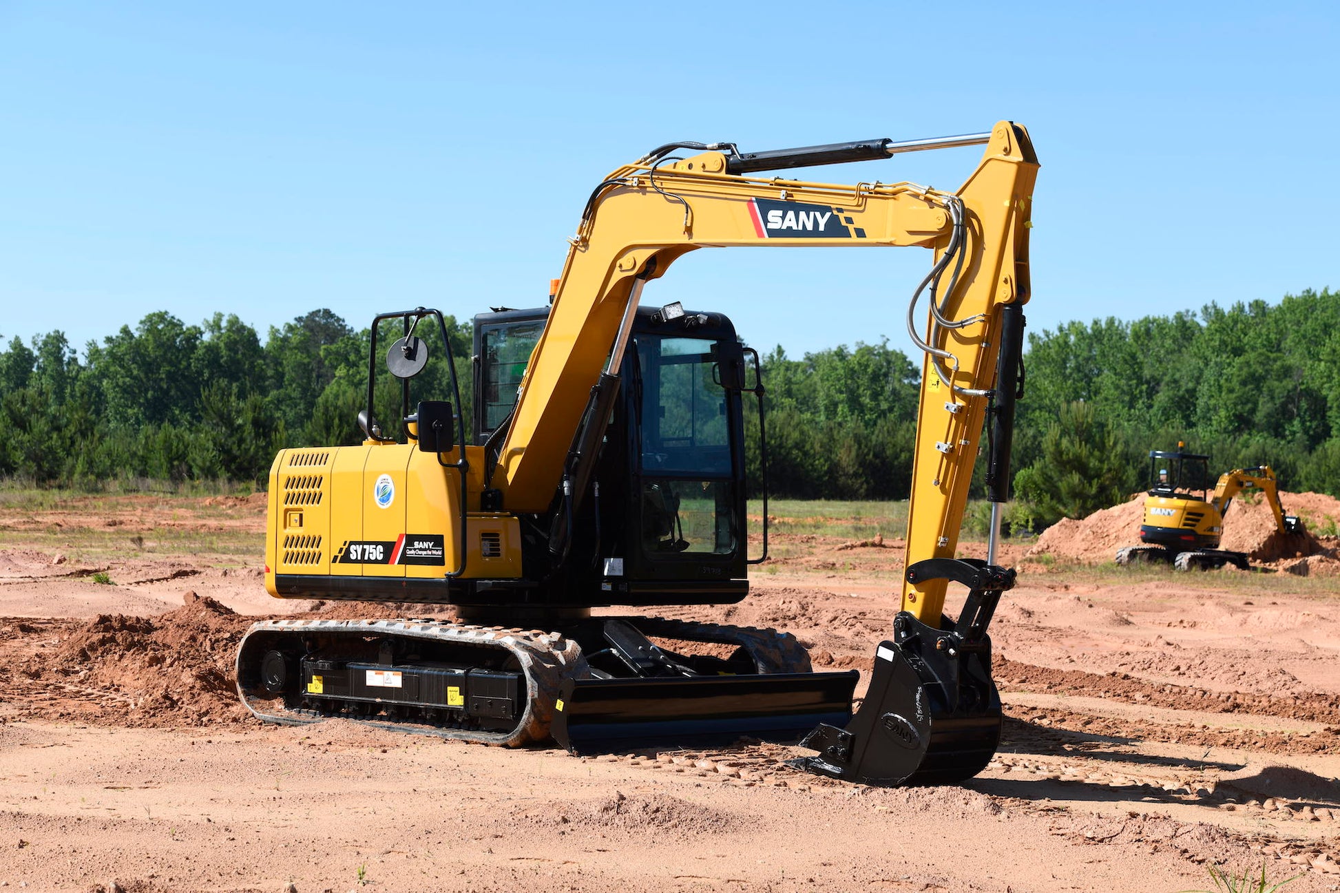 Built tough with reinforced boom, arm, swing platform and undercarriage, the SY75C boasts an efficient and reliable Yanmar T4F engine. Featuring joystick controls and a bi-directional auxiliary hydraulic system, this compact excavator proves you don’t have to trade size for performance. The comfortable cockpit features heating and AC for all-day operation in any climate, and the maintenance-friendly design allows for quick access to all service points to minimize downtime.